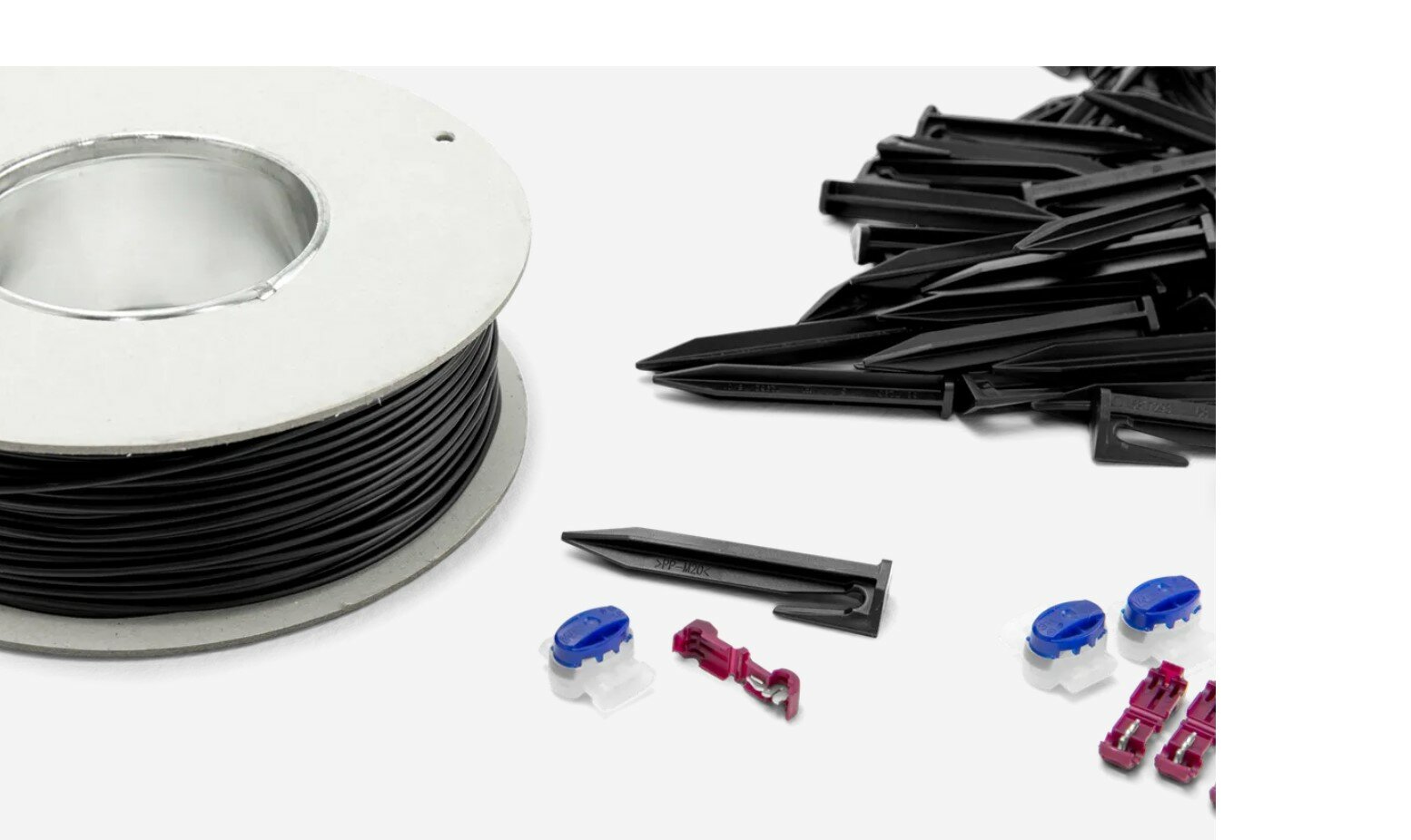 It includes - 250M of boundary wire, 400 pegs, 3 (3-way) cable jointers, and 5 spade connectors for the back of the charging station.