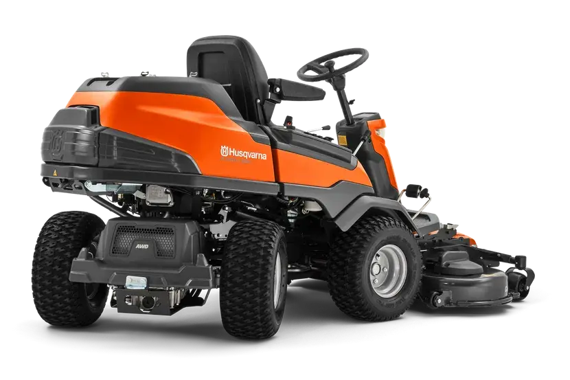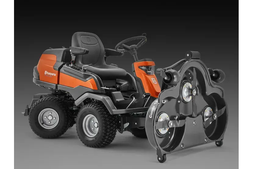 A compact, high-performance All-Wheel-Drive rider with a powerful Kawasaki V-twin Engine and power steering that easily manages large, tight and hilly areas. The unique XChange attachment frame allows you to change attachments quickly and without the use of tools. Thanks to Bluetooth connectivity, you can easily monitor your rider with the Husqvarna Connect app. Equipped with dual LED lights, an adjustable steering wheel and a convenient luggage rack, R 420TsX AWD is an excellent choice for private estate owners, sports facilities and hotels with large areas to maintain year-round. .