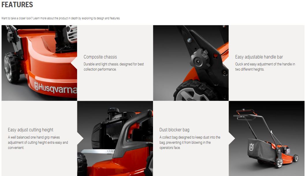 Comfortable, easy to use walk behind lawnmower with excellent cutting performance and top class collection. Features durable composite chassis, rear discharge, convenient bag handling through the handle bar and easy adjust cutting height solution.