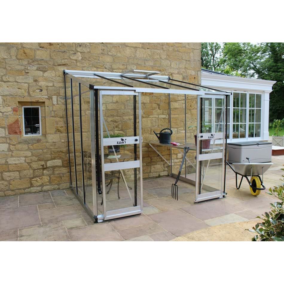 The new Eden Broadway brings the award winning Zero Threshold™ door system to the lean-to greenhouse sector. A lean-to greenhouse is a great choice for over-wintering plants because the sun will warm the wall during the day and that warmth will be released into the greenhouse at night, ensuring an ideal growing environment. All Broadway models feature wide, lockable, double doors for perfect access together with high eaves giving plenty of room for plants and people. Wide gutters capture the most rainwater possible and are easy to keep clean. The Broadway lean-to is available in a choice of three attractive frame finishes; aluminium (mill) or powder coated green or black, in either full length toughened safety glass or polycarbonate glazing. The frame features a strong integral base, speeding up the construction process and carries a 12 year frame guarantee.