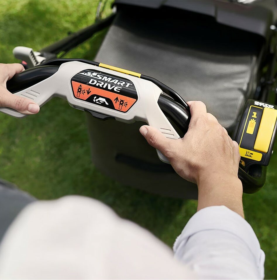 Variable speed Smart Drive allows the mower to propel itself forward at one of five preset speeds, reducing the need to push. This is particularly useful for users who want extra assistance when mowing or who have sloped or uneven gardens. The Smart Drive system is controlled via an ergonomic paddle on the handlebar, allowing speed to be adjusted comfortably using either hand without stretching or strain.