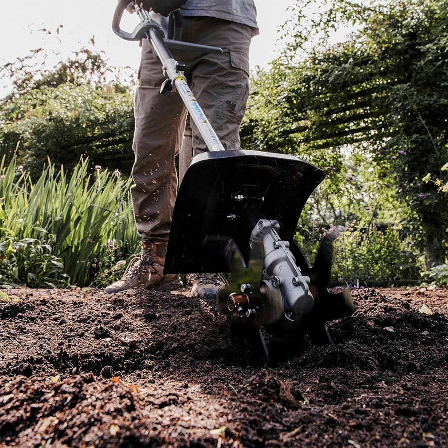 With a compact 20cm working width, the cultivator is designed for accurate work between rows and around established plants, so you can maintain beds without disturbing the surrounding area. A strong protective blade cover adds reassurance while working, helping shield you and nearby plants from debris.