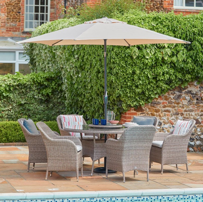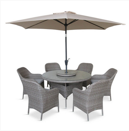 Are you looking for the product "LeisureGrow - Monte Carlo Sand 6-seat Dining Set With Lazy Susan and 3M Parasol - MCSA/SET3"? We offer this product in our garden centre in Pickering, North Yorkshire. You can order the product "LeisureGrow - Monte Carlo Sand 6-seat Dining Set With Lazy Susan and 3M Parasol - MCSA/SET3" online or you can visit our garden centre in Pickering, North Yorkshire or for more information about the product "LeisureGrow - Monte Carlo Sand 6-seat Dining Set With Lazy Susan and 3M Parasol - MCSA/SET3". We look forward to seeing you soon!