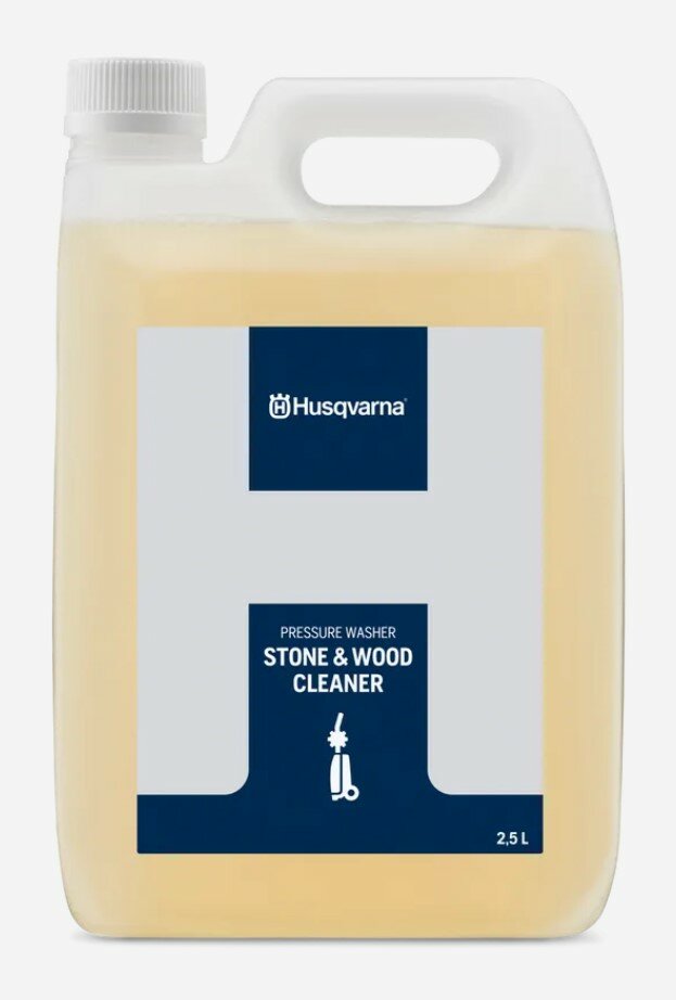 The Husqvarna Stone & Wood Cleaner 2.5 L is a concentrated outdoor cleaning solution developed for tackling stubborn dirt on hard landscaping and timber surfaces. Designed for pressure washer use, it helps lift ingrained grime, algae and moss from stone, wood, brickwork and paved areas, restoring surfaces that have dulled over time.