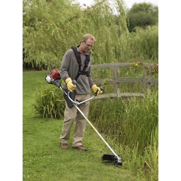 The bike-style handles give excellent stability and control when covering larger areas, particularly when paired with the included double-shoulder comfort harness. A straight shaft and low-vibration centrifugal clutch support smooth, steady cutting, while Honda’s 360° lubrication system allows the engine to operate reliably at any working angle, including banks and uneven ground.