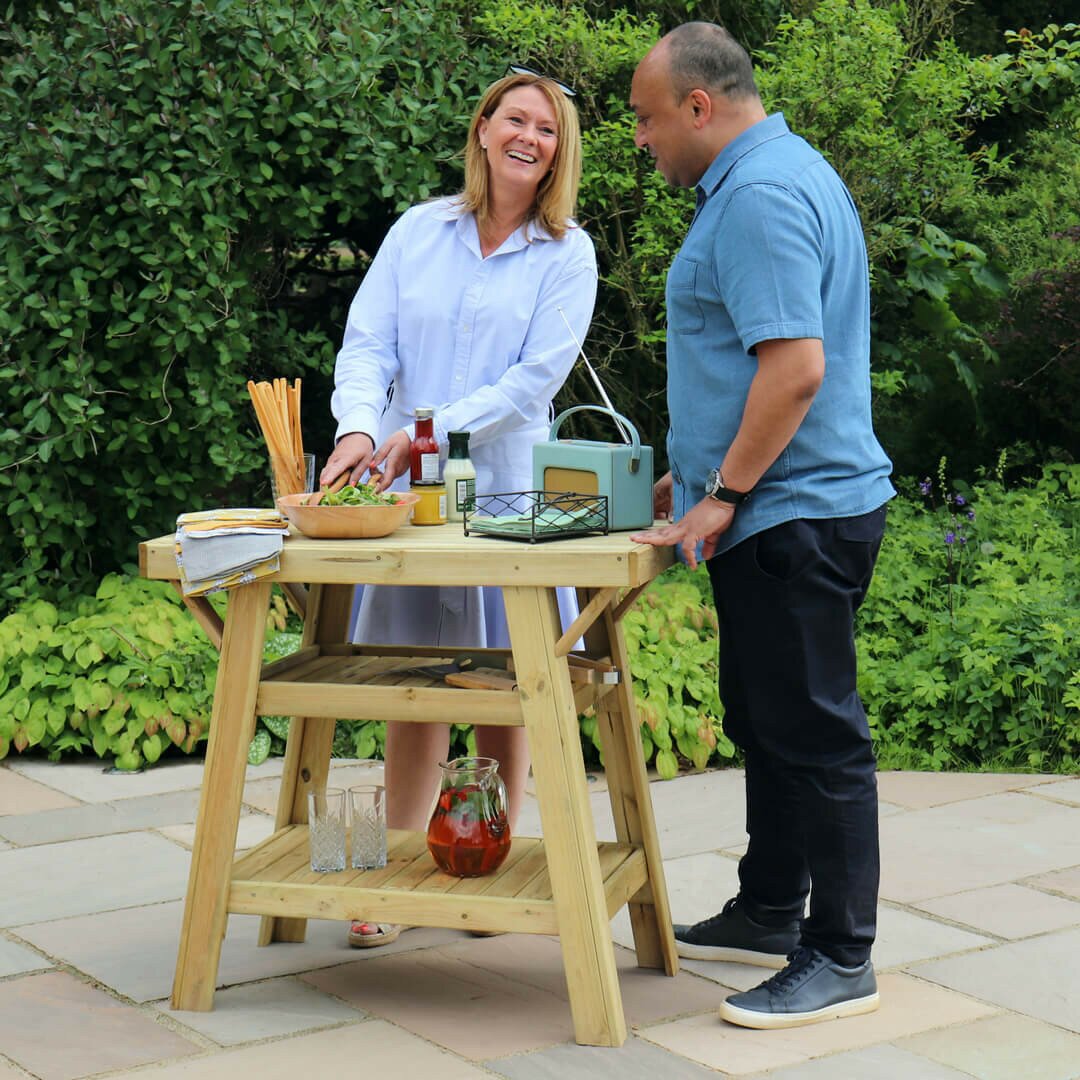 Made from pressure-treated timber, the BBQ side table is durable and weather-resistant, with a 10-year guarantee against rot. The natural wood finish complements any outdoor setting, while the robust construction ensures stability and long-lasting use.