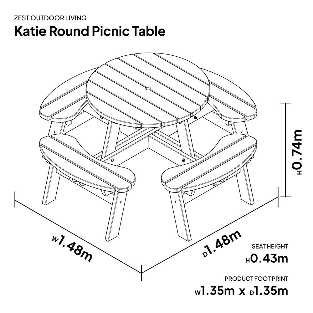 Zest Katie Round Picnic Table – Classic Wooden Outdoor Dining Set