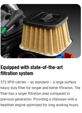 At just 6.6kg with a powerful 4.3kW engine, the 572XP® G has a better power-to-weight ratio than any other Husqvarna saw with similar displacement, and 12% higher cutting capacity than previous equivalent models. Excellent cooling and heavy-duty filtration mean great endurance and performance, while smart design and easy operation keep productivity high even with long guide bars. With AutoTune™, Air Injection™ and low vibration, it’s built to deliver all day long.