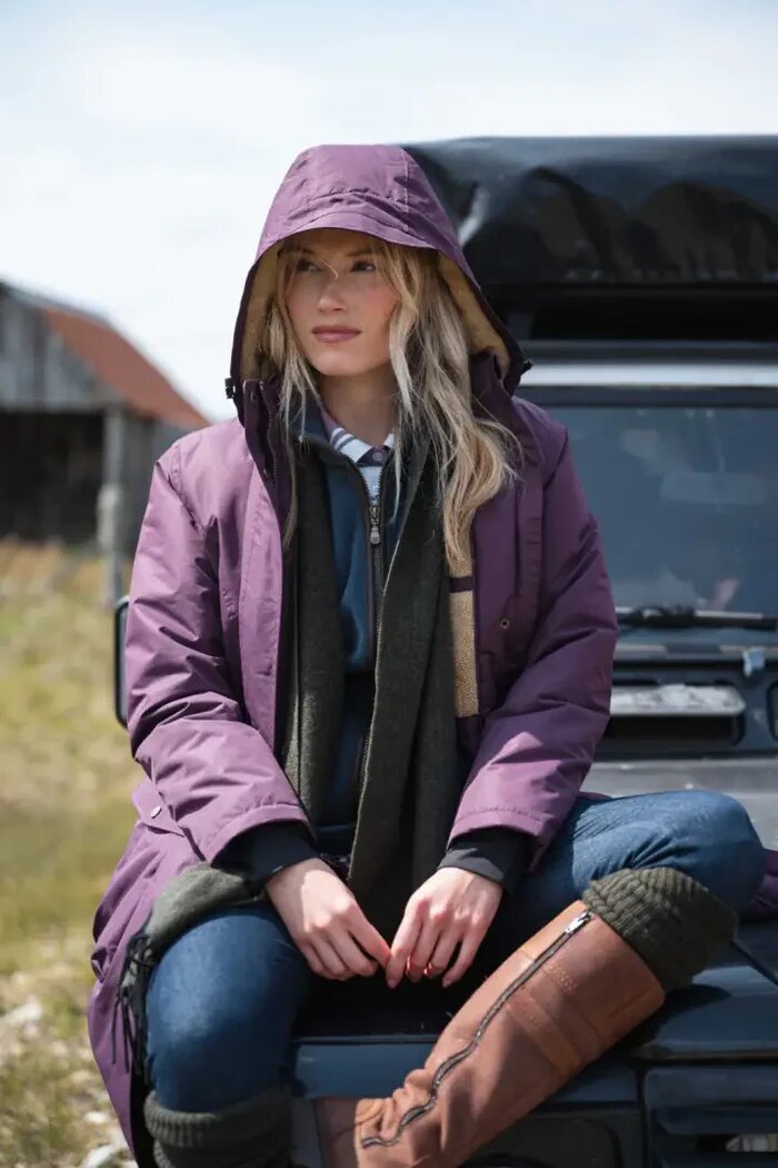 For wet, windy UK walks and outdoor chores, the Hoggs of Fife Walker Ladies Long Coat in blackberry gives reliable waterproof protection and warmth you can trust.