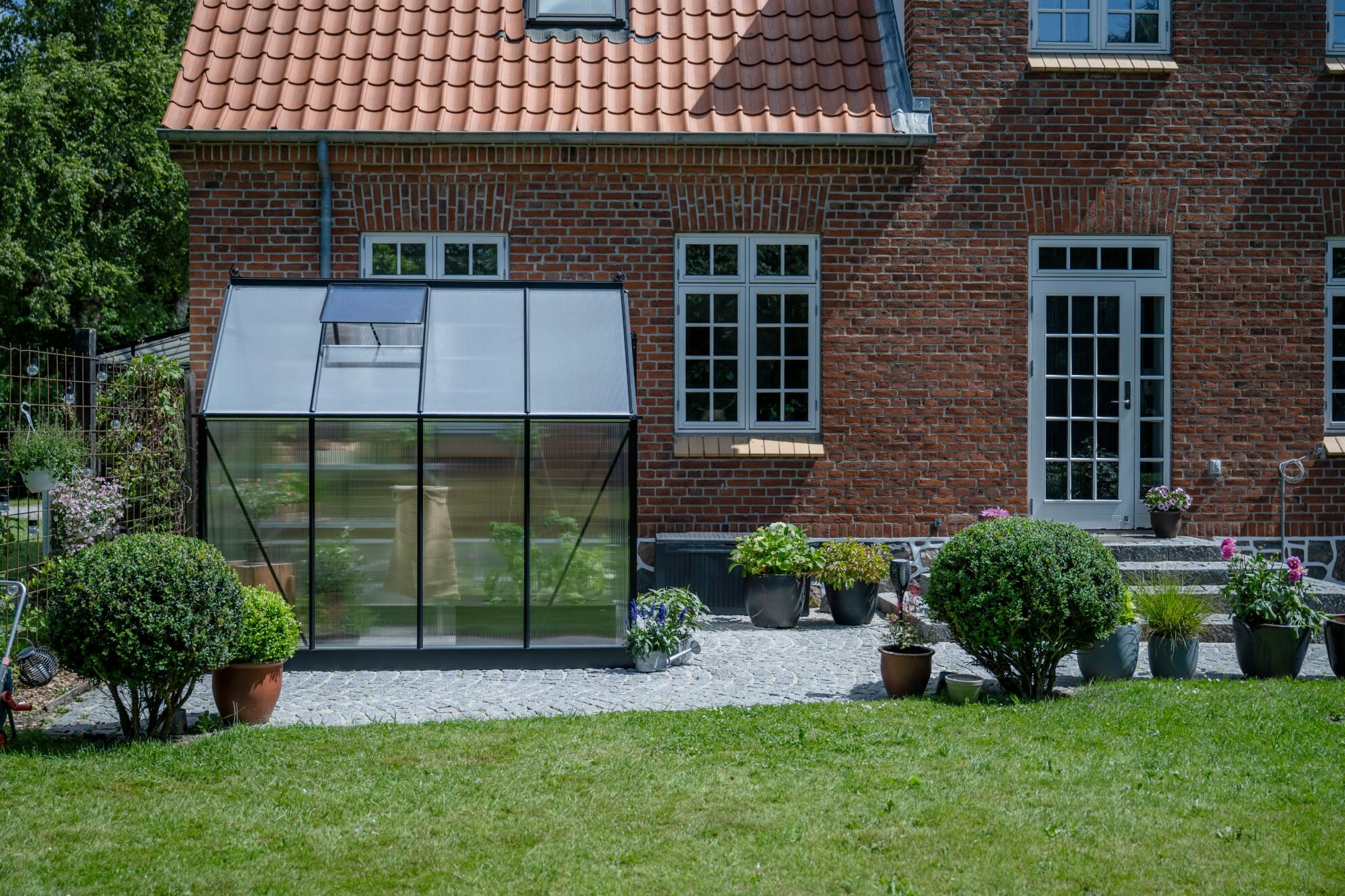 A traditional green powder‑coated frame provides a classic, natural appearance that complements garden settings, while mill aluminium frames offer a neutral, contemporary aesthetic and require minimal upkeep. When it comes to glazing, 3 mm horticultural glass delivers clear light transmission, ideal for promoting healthy growth of vegetables, herbs, and tender plants. For added strength and peace of mind, 3 mm toughened safety glass offers impact resistance without compromising light levels. Meanwhile, 4 mm twin-wall polycarbonate panels improve insulation, retain warmth, and provide extra protection for more delicate plants, making them perfect for year-round gardening. These options allow you to tailor the greenhouse to your priorities, whether that’s maximising light, enhancing durability, or improving temperature stability.