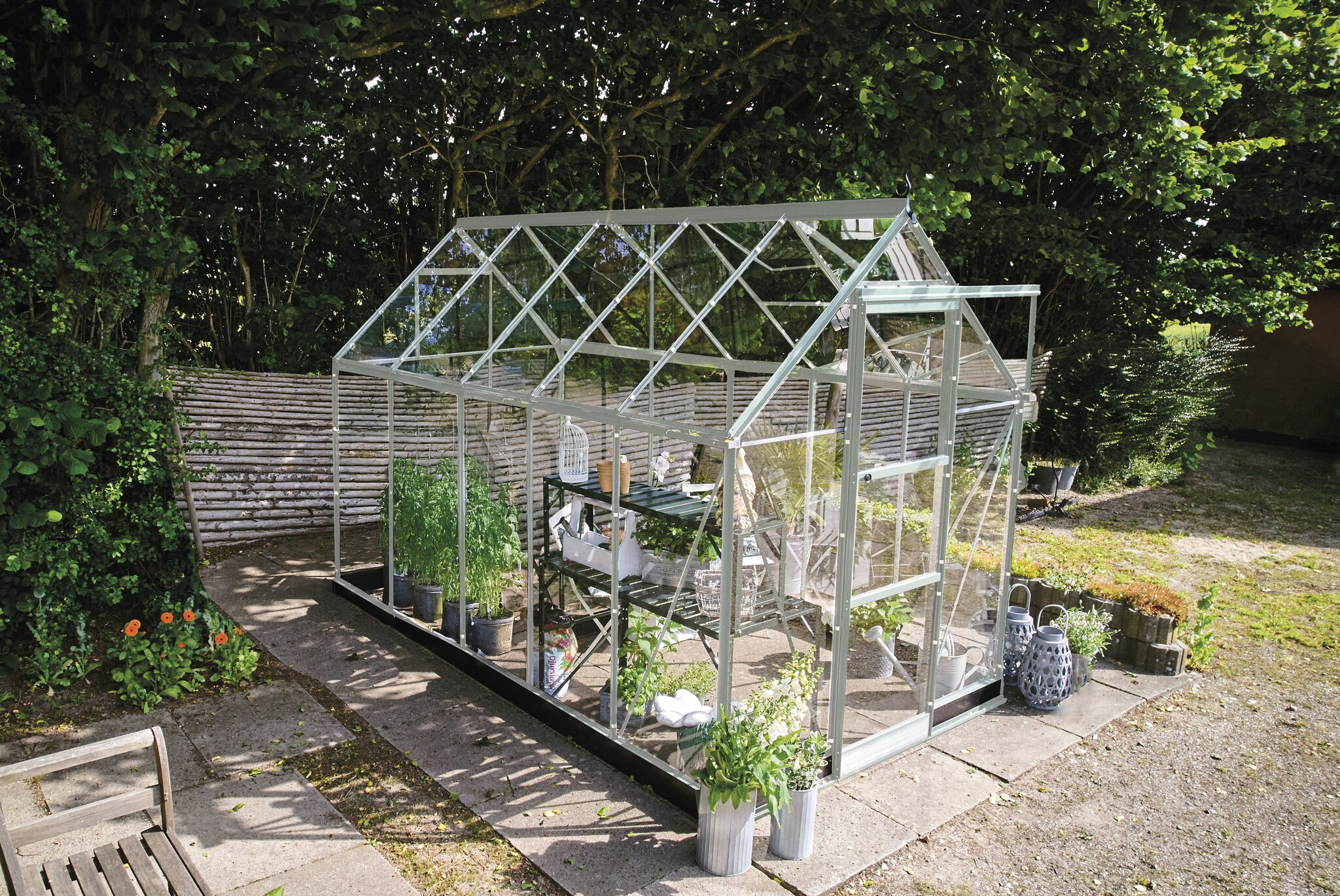 The smooth-glide sliding door allows practical entry for plants, tools and materials while preserving valuable external and internal space.