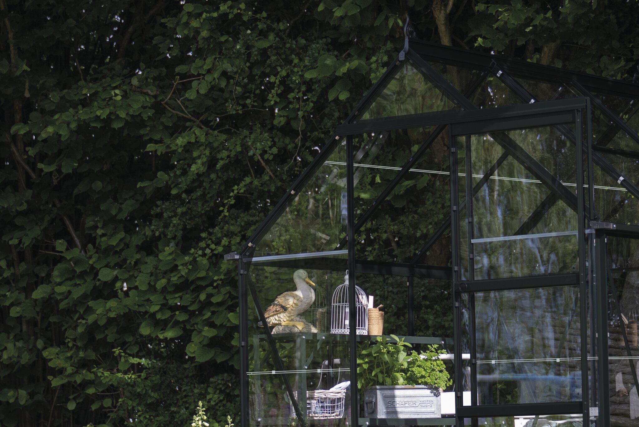 The clear 3mm horticultural glass panels allow excellent sunlight transmission, supporting vigorous plant growth and even light distribution, creating an ideal environment for seedlings, vegetables, herbs and ornamentals.