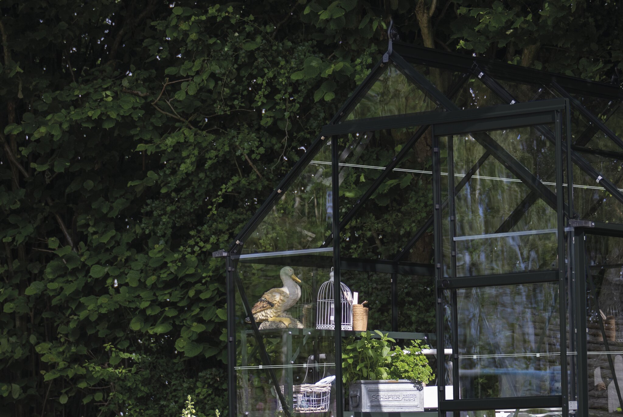 Higher internal headroom improves ventilation and makes watering, potting, and plant care more comfortable. The low-threshold sliding door maximises usable space while enabling easy entry.