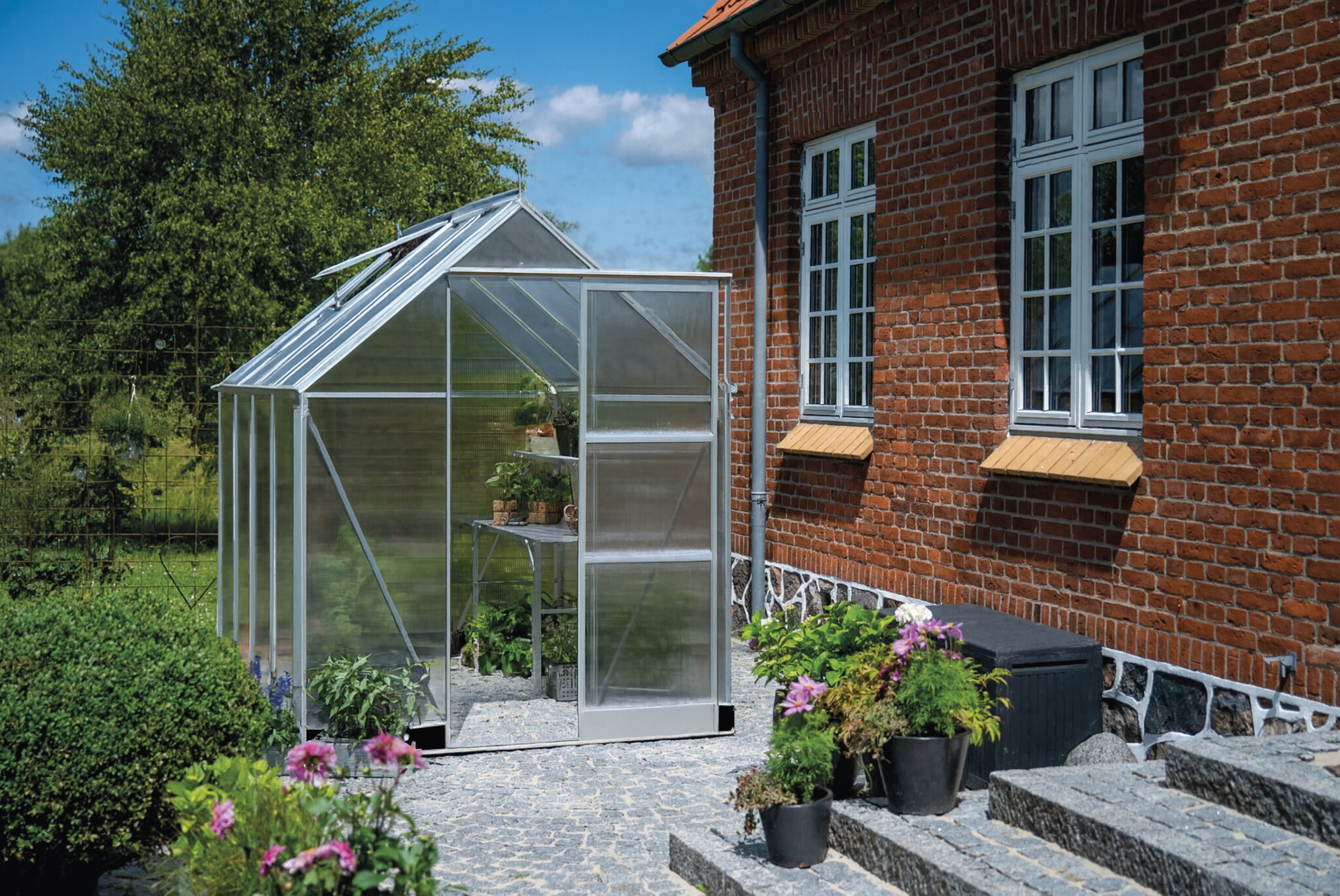Choose from a range of frame finishes and glazing options to suit your garden style and growing priorities. Powder-coated black and powder-coated green frames are available, each offering a durable, corrosion-resistant surface that protects the aluminium structure while enhancing appearance. The black finish complements modern garden designs, while the green frame blends seamlessly into traditional planting schemes. This mill aluminium version provides a clean, neutral look with minimal maintenance, ideal for gardeners who prefer a classic, understated finish.
