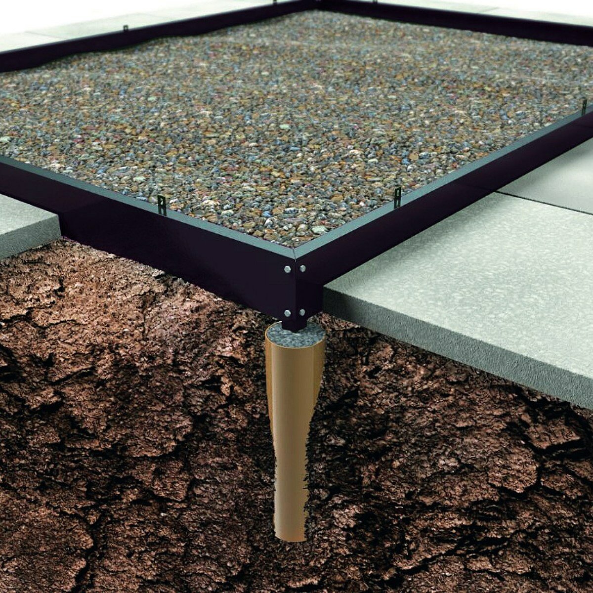 The base can be installed on prepared soil, paving slabs, concrete, or patio surfaces, provided the surface is flat and level. Integrated anchoring points allow the frame to be fixed or partially set below ground, improving resistance to wind uplift and helping lock the structure in place.