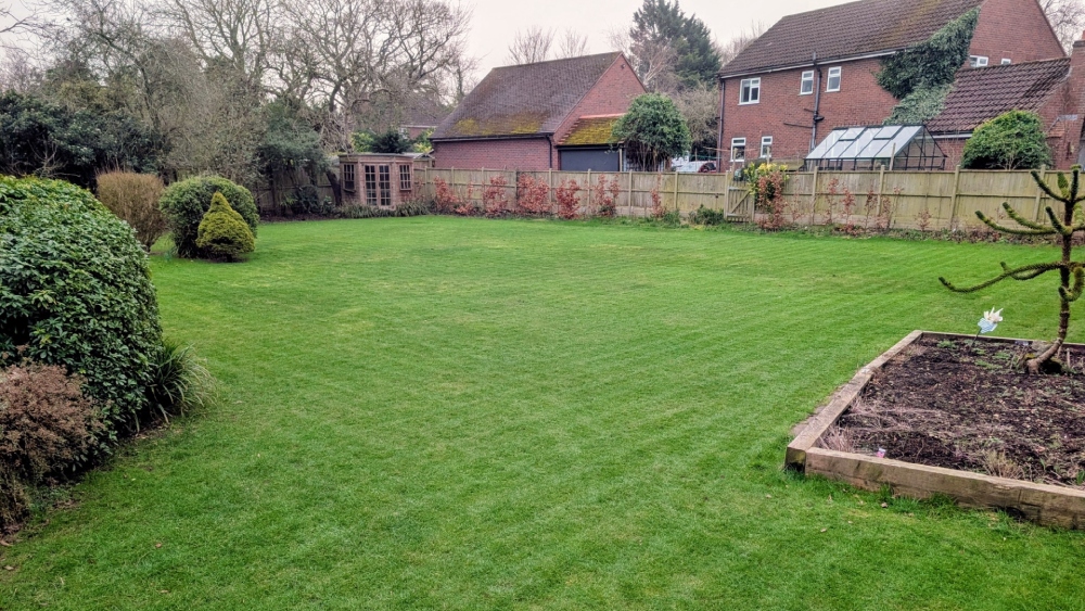 This lawn was cut by the Husqvarna Automower® 405XE NERA following initial installation and setup, after being left to run through the evening. By 7am the following morning, the cutting cycle had produced a visibly consistent, evenly maintained finish across the full working zone.