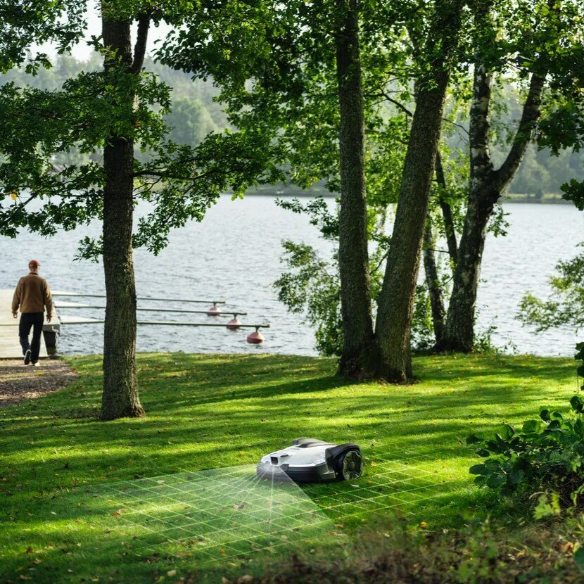The in-built camera utilises advanced AI to detect and identify objects on the lawn and acts accordingly based on the type of object it is. Thanks to infrared light, the lawn mower avoids obstacles, considers wildlife, and ensures full lawn coverage even at night. Since AI vision technology combines with satellite navigation, full lawn coverage is also ensured in areas with weak satellite signals.