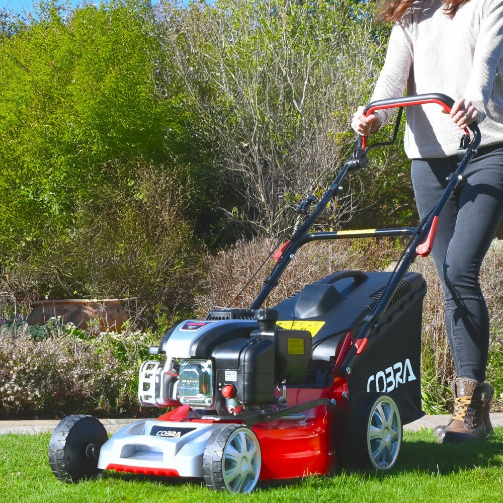 Supplied by Steam & Moorland Garden & Machinery Centre, an authorised Cobra dealer, this self-propelled petrol lawnmower is well suited to homeowners who want controlled mowing, efficient collection and durable construction.