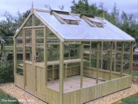 The RAVEN. This is a spacious Wooden greenhouse with double doors. Swallow greenhouses come Assembled, with a list of extras as standard. (Toughened Glass, Damp Barriers, Autovents.)